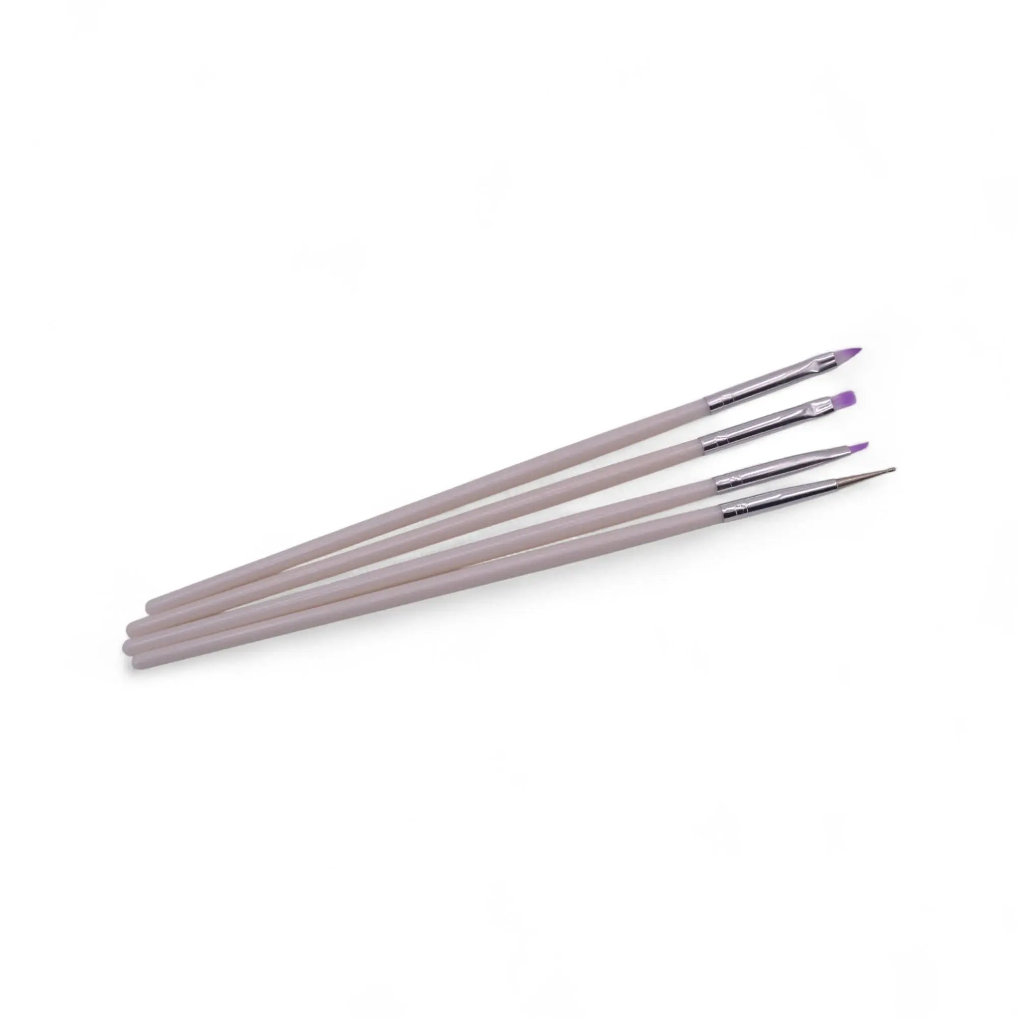 Lot 4 Pinceaux Taille 3 Droit, Biseau, Pointe et Boule Blanc - Manche 14cm Bois. Des pinceaux pensés pour offrir précision et confort dans toutes vos techniques : gel, acrylique, nail art ou décoration détaillée.