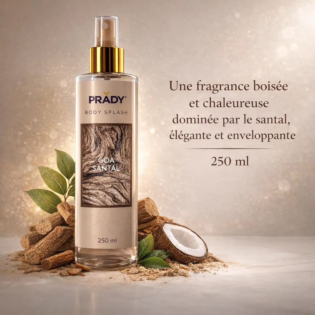 Goa Santal – Une fragrance boisée et chaleureuse dominée par le santal, élégante et enveloppante.