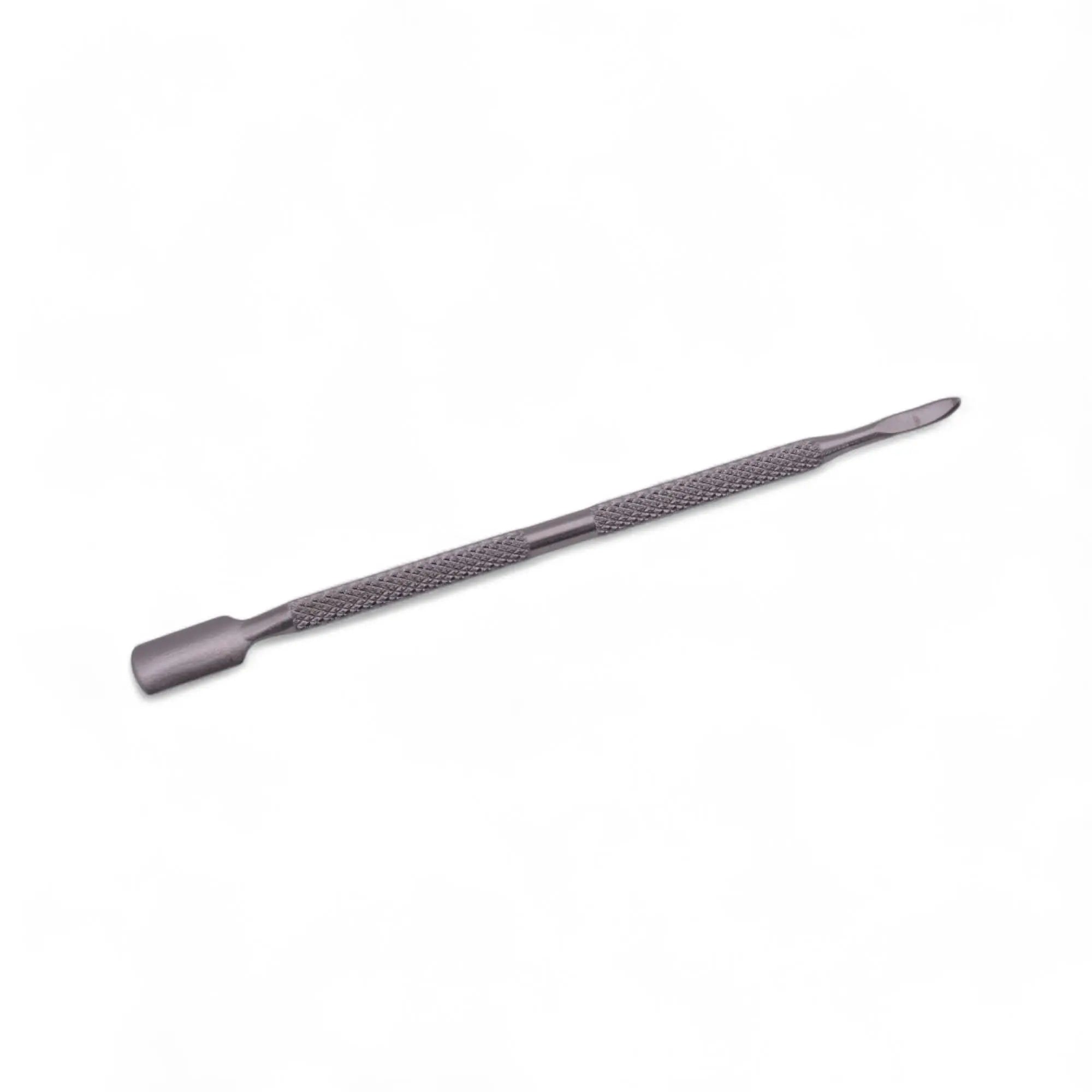 Repousse Cuticules en métal avec bout Arrondi et en Pointe incurvée. Un outil essentiel pour une préparation des ongles précise et efficace, parfaitement adapté à une utilisation professionnelle.